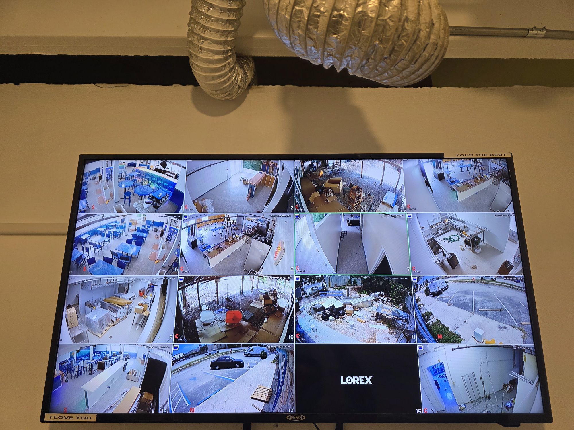 At Hurricane Restaurant, we delivered a complete security and smart infrastructure upgrade — featuring a 32-camera surveillance system, full-site Wi-Fi coverage, smart lighting for bar and outdoor areas, and a stunning 4-screen video wall made of four seamlessly integrated 55″ TVs.